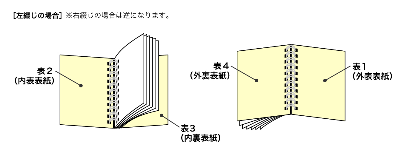 - 綴じる方向(右綴じ、左綴じ)に、ご注意ください。