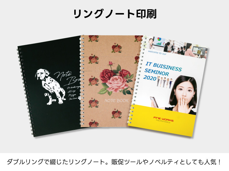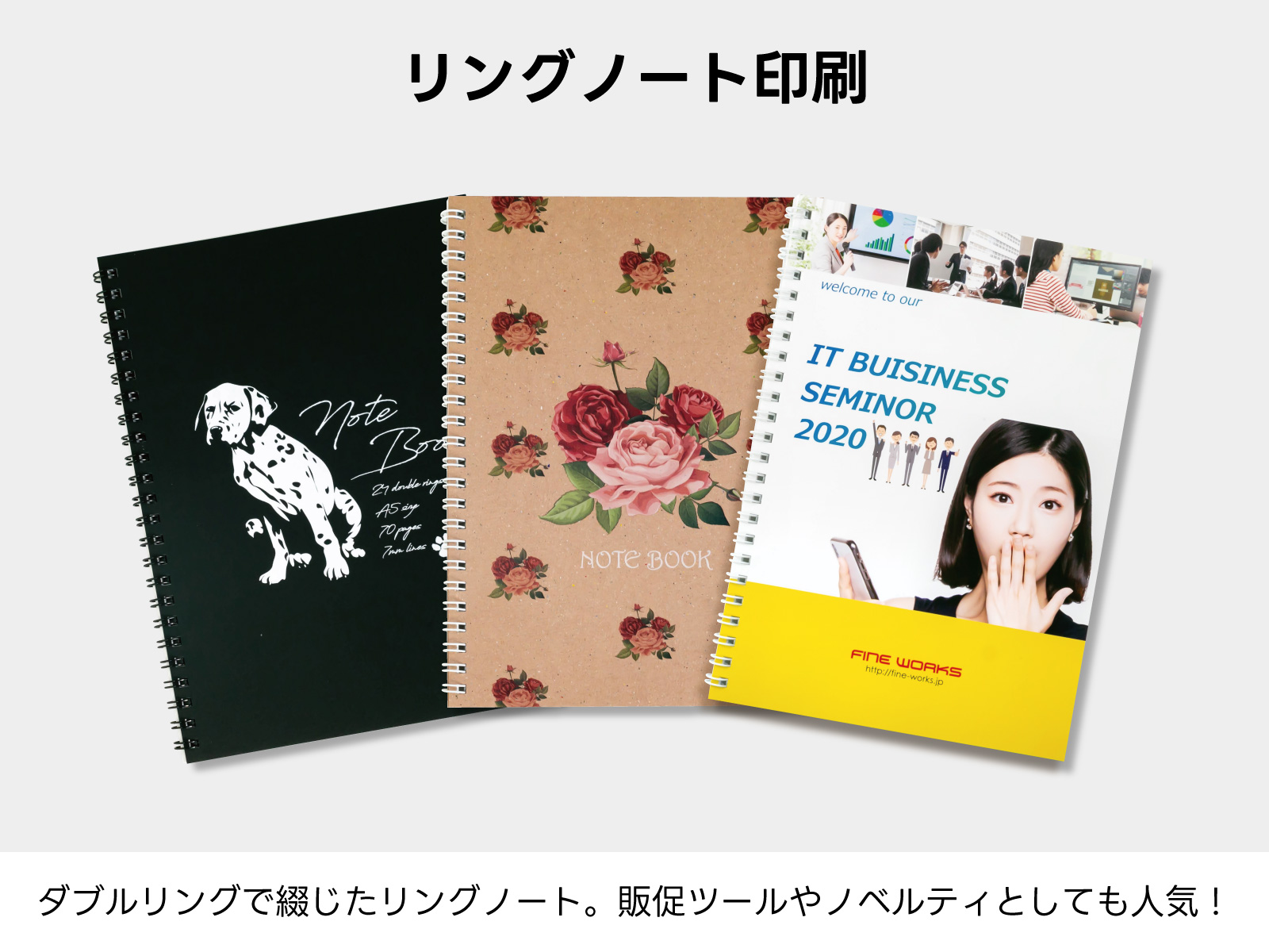 - リングノートの価格には、CTP刷版・オフセット印刷・印刷用紙・製本・送料・消費税全てが含まれております。