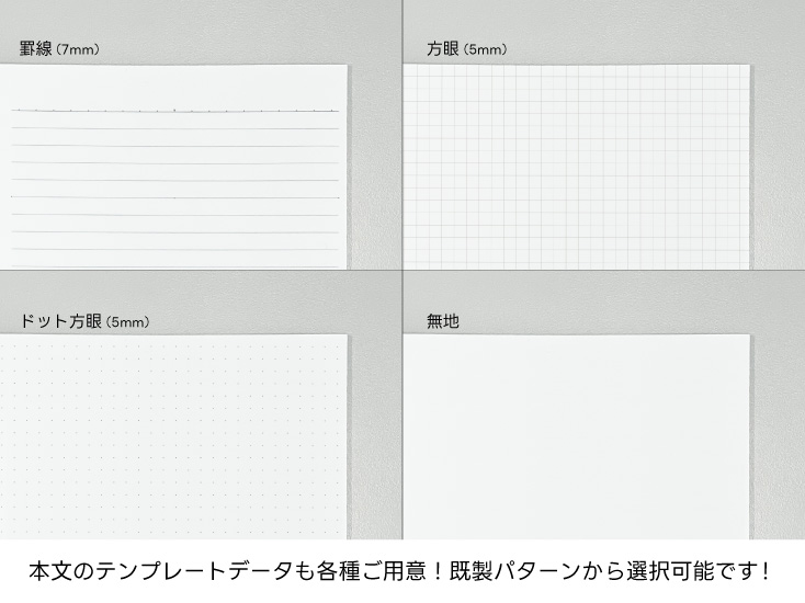 オフセット印刷とオンデマンド印刷では、選べる用紙・刷り色・本文パターンが異なります。あらかじめご了承ください。